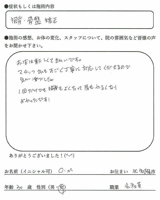 1回だけでも猫背もよくなって肩もかるくなりよかったです! -